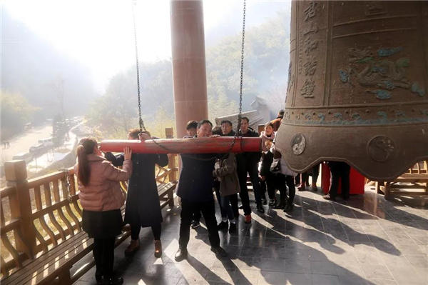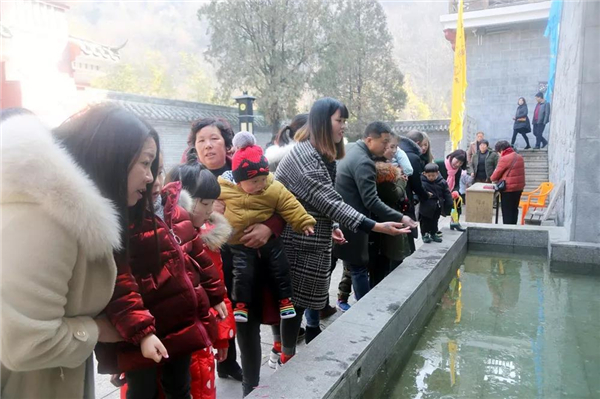 山中——抬頭見山、低頭有水,游人紛紛走進大自然擊鼓、撞鐘、許愿祈福……走進深山尋年味。