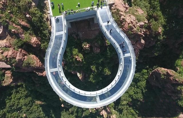 伏羲山玻璃環(huán)廊位于該旅游區(qū)的紅石林景區(qū)內(nèi),自2017年10月份開始動(dòng)工,采用無斜拉索設(shè)計(jì),整體工程用鋼量超3000噸,如今基本完工。該 環(huán)廊橋面采用150塊三層鋼化夾膠玻璃鋪設(shè),距離峽谷地面360米,環(huán)廊伸出懸崖30米,比美國科羅拉多大峽谷玻璃環(huán)廊還長出近9米。