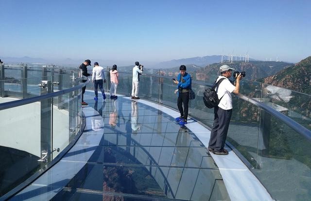 近日,伏羲山旅游區(qū)邀請(qǐng)媒體記者與少量游客體驗(yàn)玻璃環(huán)廊,一睹險(xiǎn)峻。游人行走橋面如漫步空中,透過玻璃橋面可俯瞰峽谷別樣風(fēng)光。