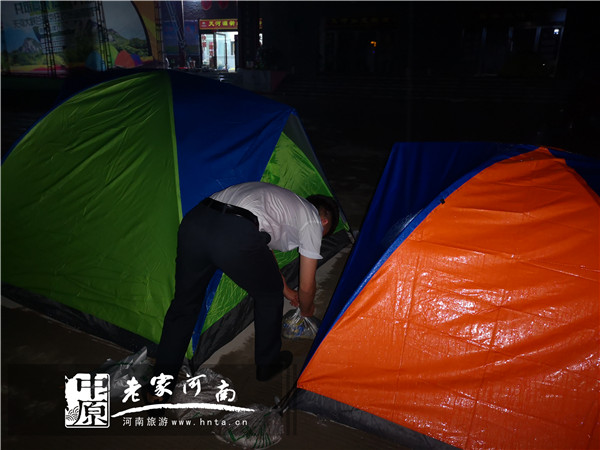 深夜下起小雨天河大峽谷工作人員將游客鞋子用塑料袋包起來(lái)