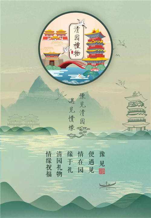 當你走進這幅畫卷,豫見清園;當你情深于此,遇見情緣。當你愿以物件留念,清園禮物;當你把愛帶回家,情緣祝福。
