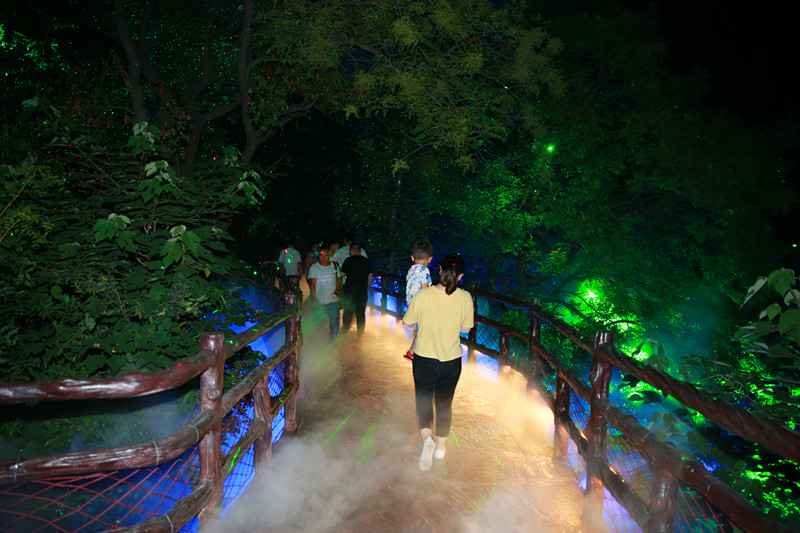 “云溪夜游自7月6日開(kāi)景以來(lái)人氣火爆,截止8月31日已累計(jì)接待游客近10萬(wàn)人次,每天限量3000人的夜游項(xiàng)目經(jīng)常爆滿。”景區(qū)相關(guān)負(fù)責(zé)人介紹,《云溪夜游》夜游項(xiàng)目全長(zhǎng)1.2公里,前后歷時(shí)8個(gè)月精心打造,大量運(yùn)用高尖端聲光電多媒體技術(shù),包含2000多套智控激光螢火蟲(chóng),近千套舞美專(zhuān)用LED帕燈,先進(jìn)激光燈投影,多套水幕3D投影系統(tǒng),以及主舞臺(tái)震撼多媒體真人神話劇等,有效填補(bǔ)了景區(qū)夜間旅游項(xiàng)目的空白,真正實(shí)現(xiàn)了“白天資源晚上用”。
