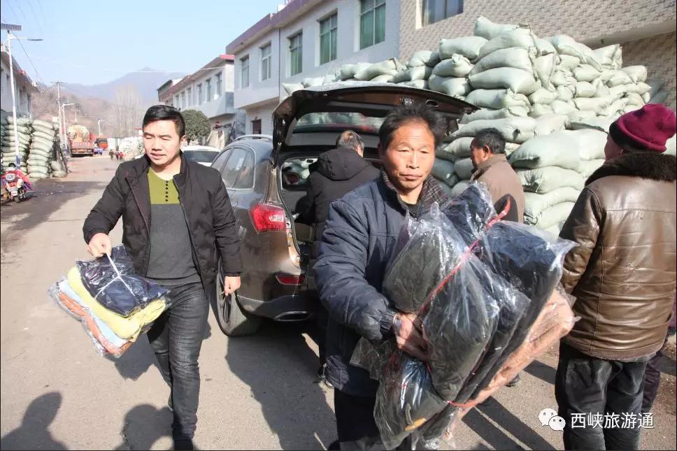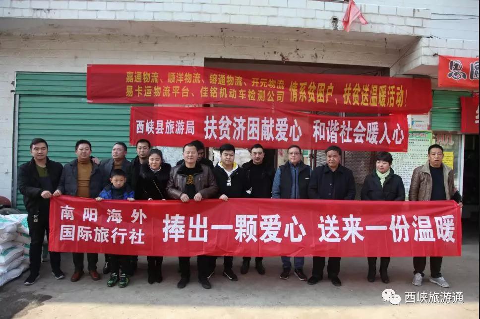 2018年12月14日,西峽縣旅游局?jǐn)y手7家物流企業(yè),來到丁河鎮(zhèn)黃草村看望貧困人口開展愛心捐贈活動,將米、面、油及衣物等物資送到他們手中,讓貧困戶溫暖過寒冬。
