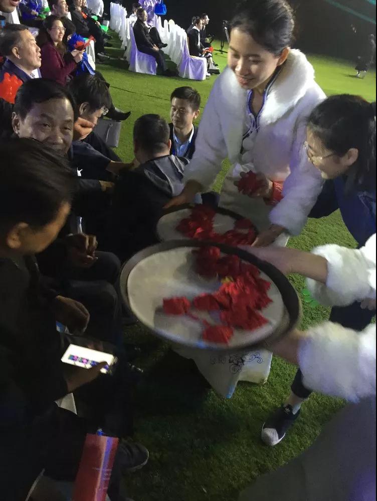 晚會(huì)現(xiàn)場(chǎng),嘉賓爭(zhēng)搶長(zhǎng)壽山紅葉香包。