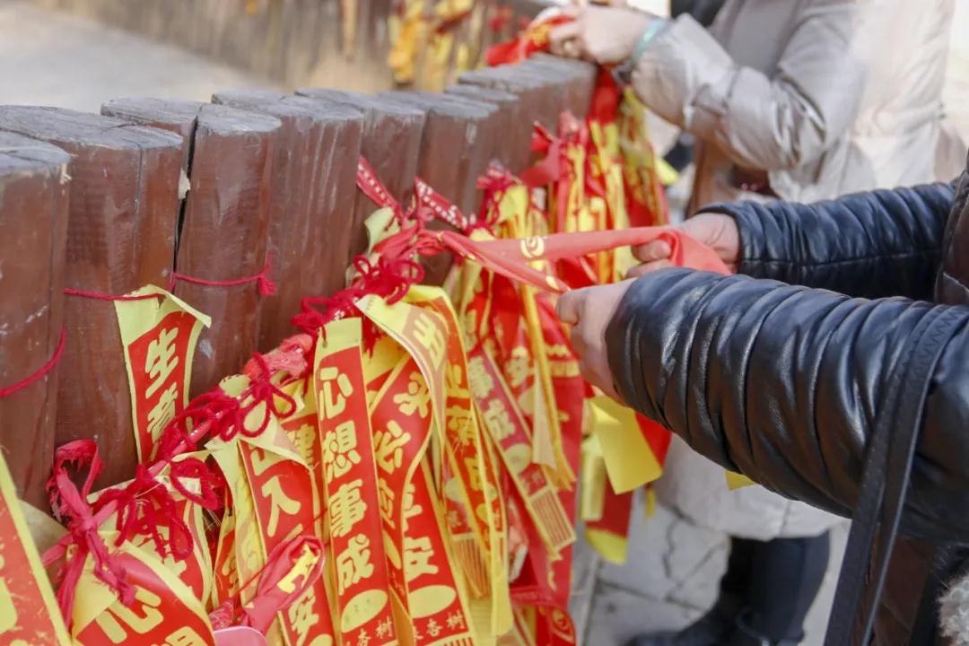 鳥鳴劃過(guò)天空帶起一絲輕風(fēng),千年銀杏樹梢祈福紅絲帶輕拂藍(lán)天回應(yīng)著樹下許愿的人群,隨風(fēng)飛舞的祈福絲帶上,寫滿的是對(duì)未來(lái)的無(wú)限向往。