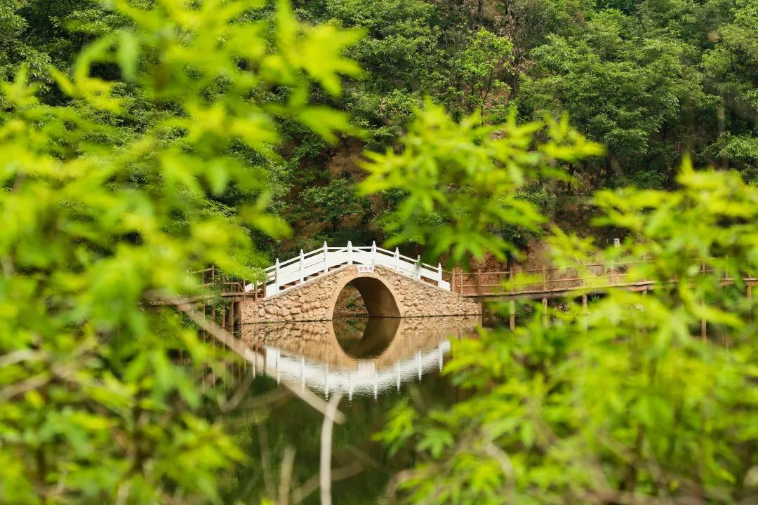 走過圓拱石橋,漫過紫微湖,陽光透過樹葉輕灑身上,抬眼望不盡的藍天白云,水流聲纏綿耳邊,紫微星系映襯千年道教文化,交融著游人嬉戲,風在耳邊輕撩,訴說著山間風景。