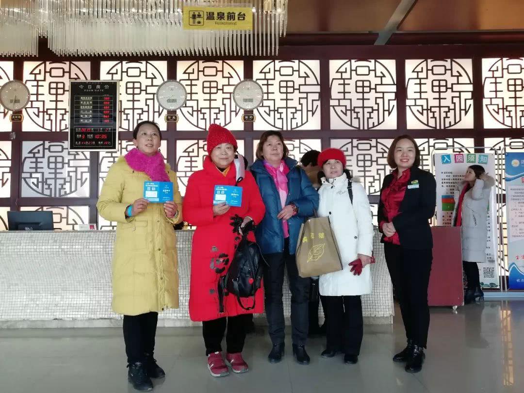 蓮花溫泉年卡熱售,持年卡游客與工作人員合影!