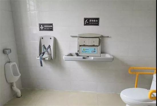 西峽公廁不僅外觀漂亮,根據(jù)周邊環(huán)境進(jìn)行“一廁一景”改造,而且特別注重實(shí)用性,比如在有條件的公廁設(shè)置無(wú)障礙衛(wèi)生間、殘疾人專用無(wú)障礙坐便器、安全抓桿、安全呼叫器以及第三衛(wèi)生間兒童座椅、兒童坐便器、兒童洗手盆、多功能臺(tái)等,真正讓廁所實(shí)現(xiàn)“內(nèi)外兼修”。