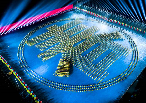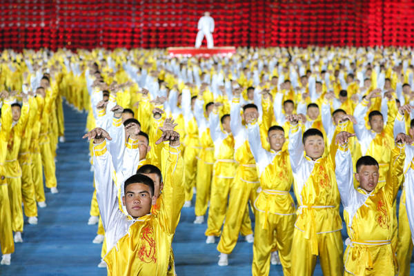 萬(wàn)人團(tuán)體操?gòu)墓?jié)目改編到演員的選拔組織,再到拍攝現(xiàn)場(chǎng)的布置都傾注了河南武術(shù)人的心血。