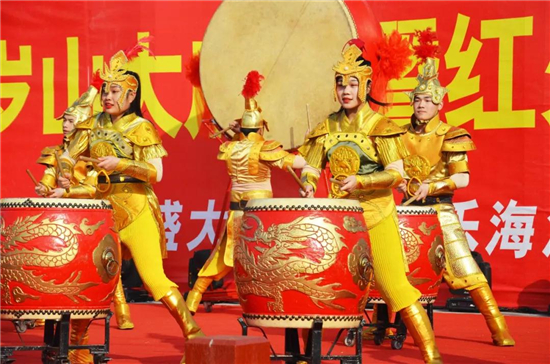 鑼鼓是中國民俗文化中必不可少的樂器,具有很強(qiáng)的節(jié)奏性,后人在傳統(tǒng)的基礎(chǔ)上融入時(shí)代元素,衍生眾多鼓類演藝,黃金甲鼓表演就是其中之一,多個(gè)舞者變身“戰(zhàn)場(chǎng)將軍”身披金色戰(zhàn)袍上場(chǎng),擊鼓而歌,瞬間點(diǎn)爆全場(chǎng)。