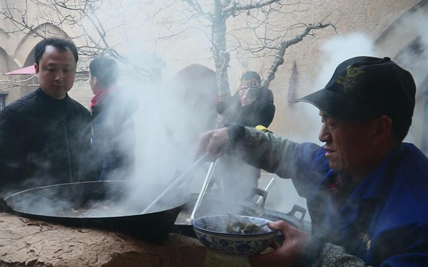 在景區(qū)贠家院內(nèi)人頭攢動(dòng),燃燒著烈火的灶臺(tái)后面拖著七口大鍋,好似一條黑龍?jiān)谕淘仆蚂F,陣陣炊煙升起、白色的熱氣幾乎籠罩住整個(gè)院子上空,伴隨著響亮的嗩吶聲、鑼鼓聲、游客的笑語聲,一碗碗熱辣而滾燙的農(nóng)家菜就上桌了,這擺的滿滿當(dāng)當(dāng)、噴香四溢的一桌子,就是著名的陜縣“十碗席”。據(jù)了解,陜縣十碗席已有三百余年歷史,系陜州名吃珍品。光緒二十八年(1901)九月初八慈禧太后及德宗皇帝從西安回鑾北京路過陜州,當(dāng)?shù)毓賳T為取悅慈禧和德宗,遂安排當(dāng)?shù)孛麖N用十碗水席進(jìn)獻(xiàn),太后和德宗品嘗純正地道的十碗席后大悅,且親口夸贊:“十碗水席,十全十美”。此后,豫西“十碗水席”名聲大振,當(dāng)?shù)丶t白大事用十碗席招待上賓相沿成習(xí),到現(xiàn)在“十碗水席”已久負(fù)盛名,揚(yáng)名天下。今天地坑院景區(qū)把這套傳統(tǒng)宴席挖掘的淋漓盡致,從傳統(tǒng)的記賬方式到做菜的每一個(gè)把式,再到每一味作料都進(jìn)行了細(xì)致的研究,用心讓每一位游客感受地道的傳統(tǒng)特色味道,用心做到讓每一位游客賓至如歸。