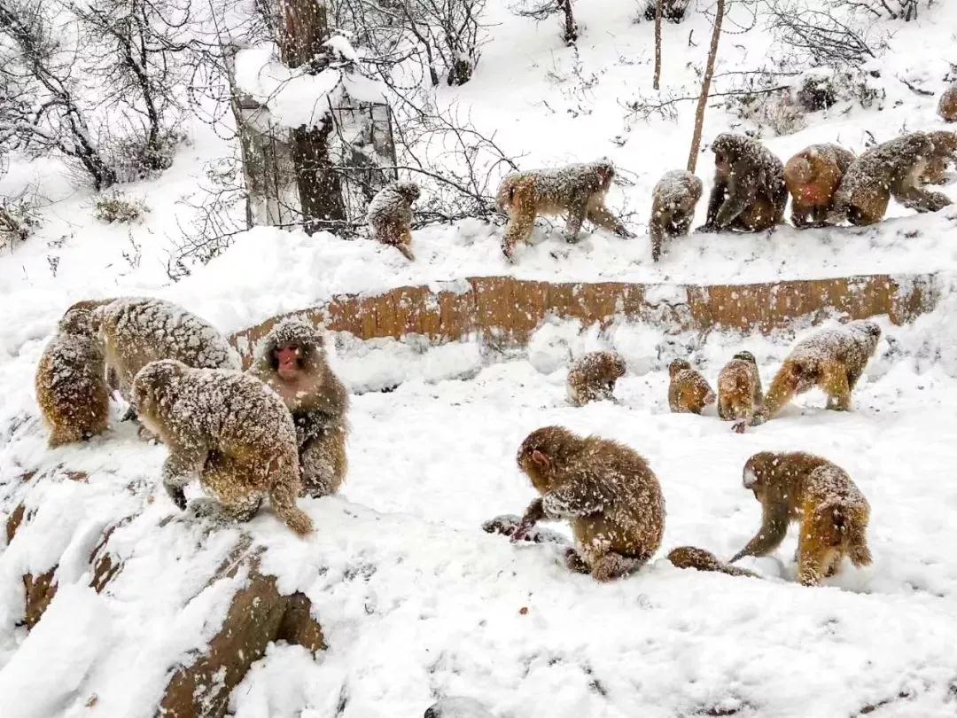太行雪猴迎新春,游人行走拍照,嬉笑聲在山間環(huán)繞。一家人歡聚一堂來中國猴山擁抱自然拍合照吧!