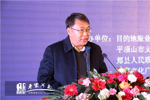 平頂山市文化廣電和旅游局副局長謝煒宣布“2019年十三省目的地旅業(yè)聯(lián)盟大會郟縣旅游推介暨郟縣旅游發(fā)展論壇”開幕