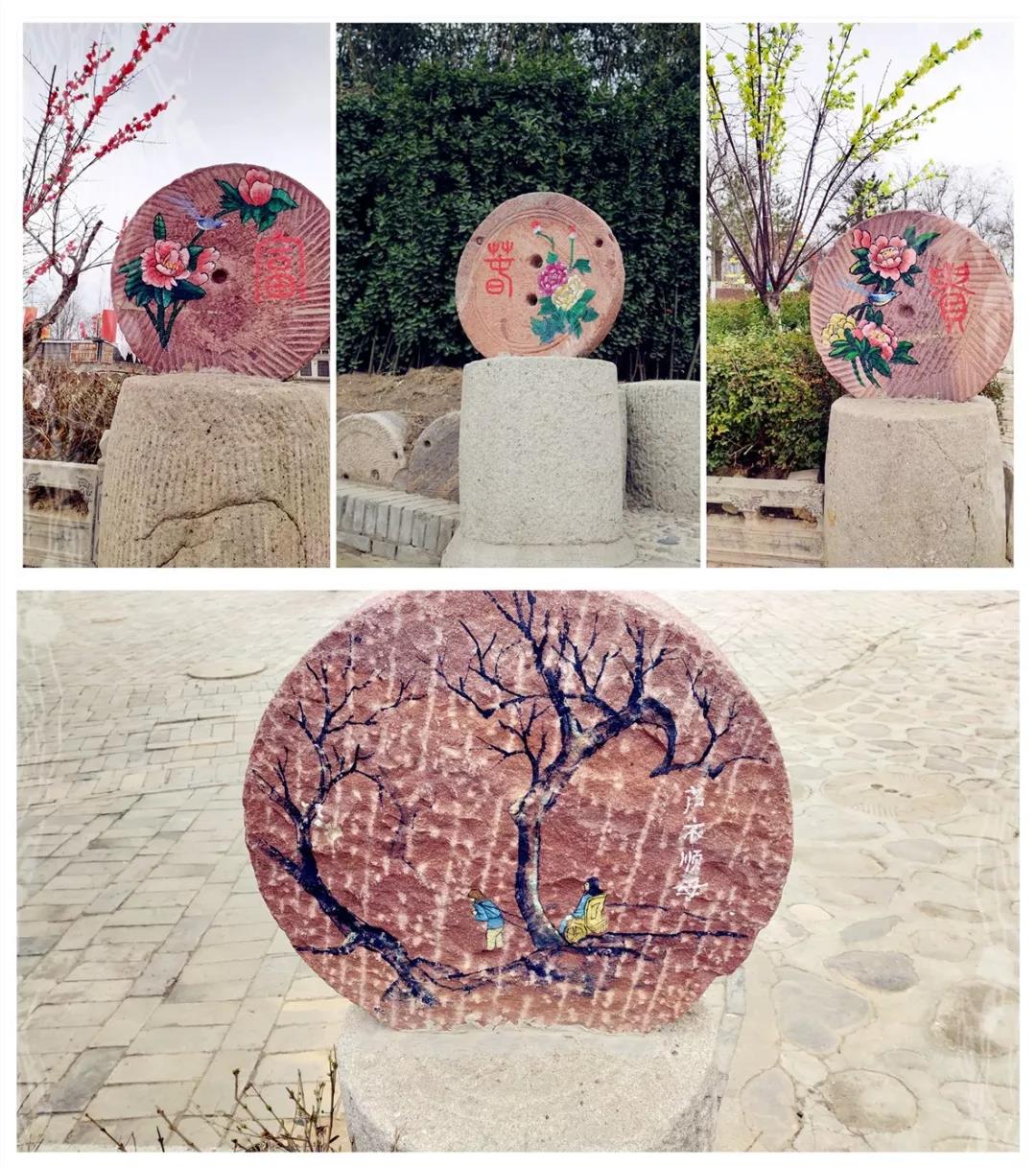 除了樹繪,陜州地坑院到處彌漫著文藝的氣息,平常的不能再平常的磨盤,時(shí)而花開(kāi)富貴,時(shí)而講述著一則故事,瞬間變得那么的可愛(ài),那么與眾不同。