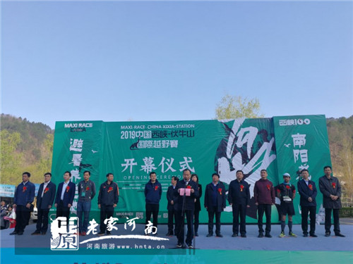 上午8:30,河南省文化和旅游廳宣傳推廣處調(diào)研員底鮮平,南陽市政協(xié)副主席李德成,中央電視臺新聞中心制片人屈鑫,南陽市文化廣電和旅游局局長白振國,南陽市體育局副調(diào)研員雷清鎖、解釗建,西峽縣委書記、縣長周華鋒,縣人大常委會主任呂秀武,中華戶外網(wǎng)CEO張海峰,法國極限賽事協(xié)會代表、MaXi-Race 技術(shù)總監(jiān)Cyril COINTRE等共同為50公里組和100公里組選手鳴笛發(fā)令。