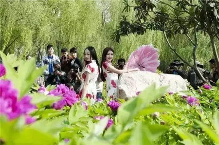 眾多妙齡女子身著旗袍搖曳于花海之中,步步生蓮,風情萬種,像極了微風中的牡丹搖曳生姿,展現(xiàn)花開盛世的錦繡之景,再現(xiàn)“名花傾國兩相歡”的精美畫卷。