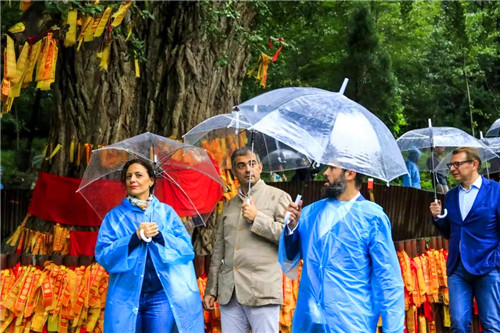 中秋小長(zhǎng)假期間,來(lái)自意大利的旅行團(tuán)走進(jìn)王屋山景區(qū),切實(shí)體驗(yàn)了一把專(zhuān)屬于第一洞天王屋山的中秋佳節(jié)。