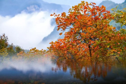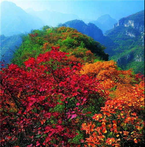 一夜寒露,涼風過境,為秋葉換了新妝,遠處起伏的山巒上,橙黃紅綠,好是熱鬧,在云臺山上,秋意越來越深了。