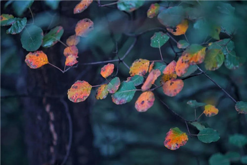 葉子大概是最懂秋的,夏日時,它盡力生長,青翠茂盛;待到入了秋,它就淡然去放低,隨著風飄然落下,只余下零星的葉子和橙紅藤黃的果實。