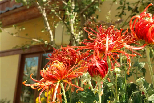 剛離土的菊花,還需要兩三天的休整期,才能更美的綻放,好多還是花骨朵呢!