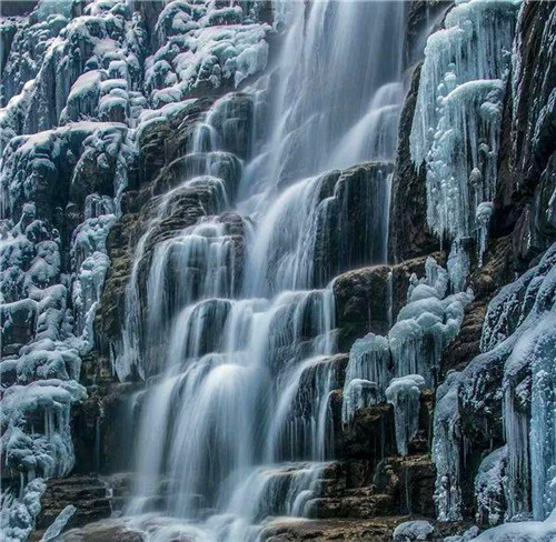 冰瀑,是冬天最具魅力的精靈。隨著氣溫逐漸降低,當(dāng)夏日里靈動、壯觀的瀑布、流水潺潺的溪流遇上冬天,仿佛瞬間被定格住一樣,傾流直下,水凝成冰,別有情趣。