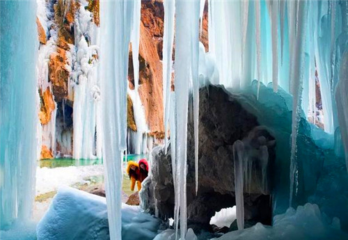 巨大的冰瀑與陡峭的巖石交相輝映,形成了別有洞天的冰雪城堡,宛若現(xiàn)實版的冰雪奇緣,讓人想要一探究竟。