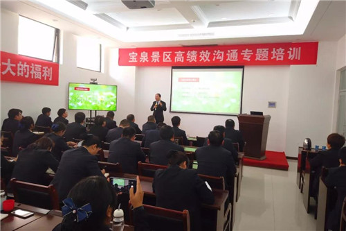 為進(jìn)一步促進(jìn)公司高效和諧氛圍,提高員工溝通技能,激發(fā)員工潛能,創(chuàng)造更高績(jī)效,12月10日,寶泉景區(qū)組織召開了《高績(jī)效溝通》專題培訓(xùn),參加培訓(xùn)的有公司領(lǐng)導(dǎo)班子成員、各部室負(fù)責(zé)人、主管、領(lǐng)班、骨干員工100余人。