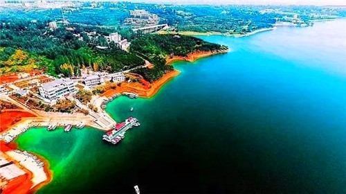 陸渾湖歷史悠久,文化厚重,湖面碧波蕩漾,風(fēng)景之秀 , 周圍山峰之奇,堪稱美麗畫卷。