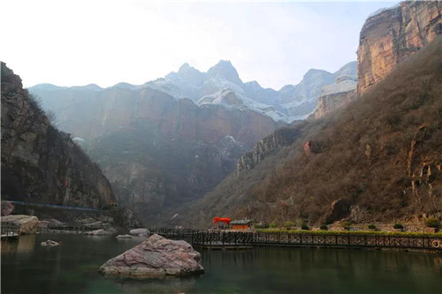 被云霧籠罩著的太行山脈,若隱若現(xiàn),山頂積壓著的白雪,在初晨陽光的照耀下,有騰云駕霧般意境,不是仙境,勝似仙境。