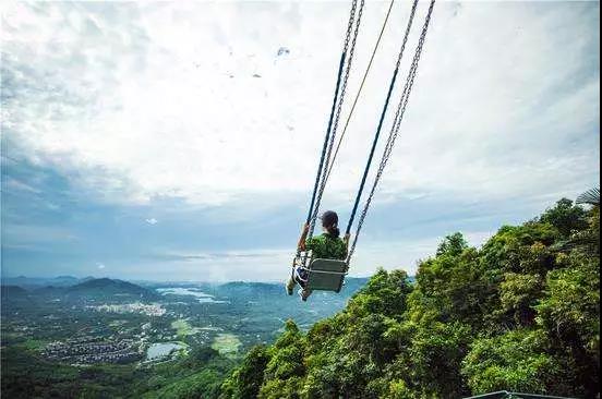 坐在懸崖秋千上,經(jīng)輕輕一推,秋千即刻往外蕩出,整個身體仿佛頓時脫離依靠,讓人充分體驗“命懸一線”的驚險刺激~~~