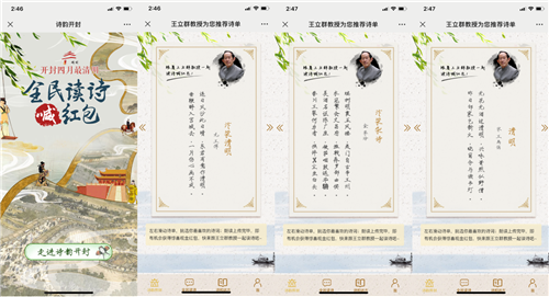 由開封市文廣旅局與騰訊聯(lián)手舉辦“開封四月最清明·全民讀詩喊紅包—王立群教授為您推薦詩單”線上讀詩活動(dòng),4月3日已重磅上線。厚植詩詞文化的古城開封,演繹清明創(chuàng)新的文化高地,以讀詩喊紅包的創(chuàng)新活動(dòng),與時(shí)代脈動(dòng),深化開封文化旅游,增強(qiáng)文化自信,促進(jìn)文化輸出,全面打響“開封四月最清明”城市旅游品牌的知名度和文化競爭力。