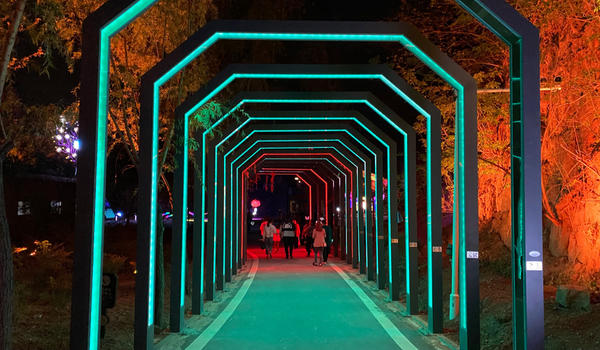 據(jù)悉,該夜游項(xiàng)目有26處互動裝置和36處燈光小品,采用風(fēng)感、體感、聲感,紅外線、雷達(dá)等多種互動感應(yīng)技術(shù),增強(qiáng)景區(qū)的互動體驗(yàn),打造“夢幻山水”、“奇幻體驗(yàn)”、“琴上舞蹈”、“百獸鬧夜”、“魔法滿屋”和“魔幻森林”的主題場景。項(xiàng)目占地160余畝,曾是櫻桃溝景區(qū)的情人坡等景點(diǎn),通過40余處投影利用動靜態(tài)投影技術(shù),裸眼3D投影,紗幕全息投影,地面投影,互動投影,舞臺秀場,激光演繹等多種沉浸式演繹手法,營造出櫻桃溝夢幻、奇幻、魔幻的氛圍。