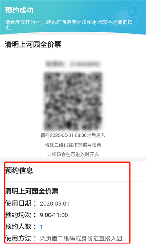 當您完成支付后,系統(tǒng)會發(fā)給您入園二維碼,此二維碼在非預約時間段內(nèi)暫無法使用,在預約時間段內(nèi),二維碼會自動顯示,無需換票,刷碼直接入園。