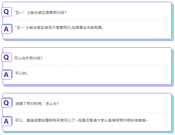 “五一”假期期間,景區(qū)實行分時段實名預約游覽制度,所有游客需網(wǎng)上預訂門票: