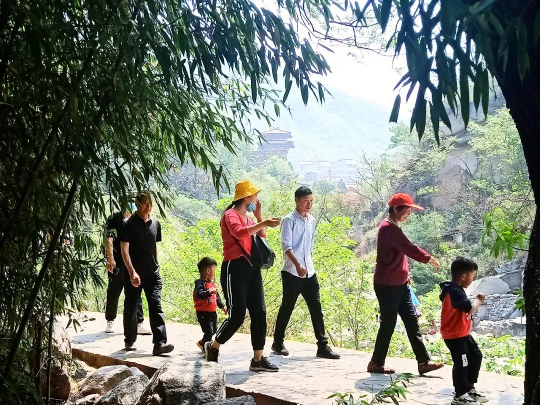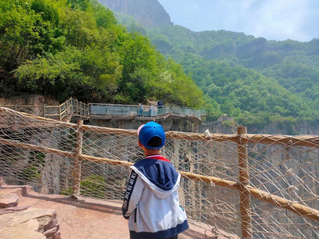 游人或駐足,或跋涉,極目遠(yuǎn)眺,備感心曠神怡。無數(shù)的綠連綿在一起,將五月的新鄉(xiāng)南太行裝扮得綠意醇厚,使人神清氣爽。
