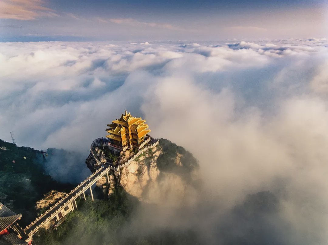金殿位于山頂最北面位置,此位置適合拍道德府、玉皇頂、亮寶臺(tái)、縣城方向的云海等。