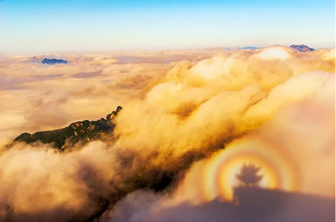白云山是一個(gè)讓人又愛(ài)又恨的地方,愛(ài)它是因?yàn)椴讲浇跃埃?ldquo;恨”它則是因?yàn)榫吧,讓很多攝影師拿起了相機(jī),卻不知道先拍哪里好。雨后晴天,在云海形成之際,你憑欄而望便會(huì)看到一道七彩之光就會(huì)從云山中迸出,這就是白云山的七彩佛光。白云山,我勸你“善良”一點(diǎn),景色不要太多,風(fēng)光不要太好,否則攝影師是要“怪罪”你的。