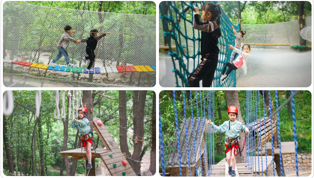 嵖岈山冒險(xiǎn)谷,建在樹上的游樂園,引進(jìn)國際流行戶外運(yùn)動(dòng)新風(fēng)尚,是一項(xiàng)大人、小孩兒、親子都可以體驗(yàn)的戶外項(xiàng)目,有空中獨(dú)木橋、鋼索、滑板、樹上滾筒,親子線讓你和孩子共度美好的親子時(shí)光之外,也能鍛煉孩子的專注力、協(xié)調(diào)能力及思維能力,更能提高孩子的膽識,激發(fā)孩子的潛能。