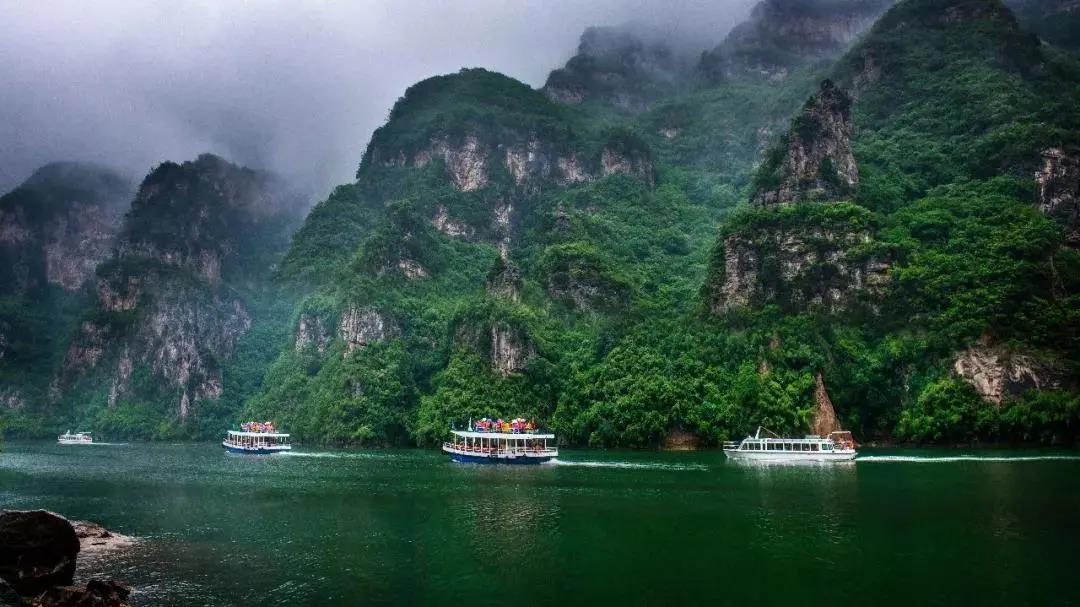 雨中的青天河正是觀云海的好時(shí)候,如此夢(mèng)幻般的青天河怎能錯(cuò)過(guò)。煙雨蔥蘢中,大泉湖與淡青色的天空,翠綠色的湖水,郁郁蔥蔥的山峰交相輝映,如潑墨丹青一般,像極了一幅素雅的縹色畫(huà)卷。