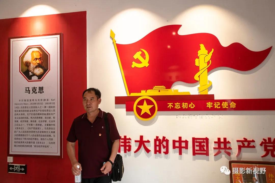 這座現(xiàn)代建筑門(mén)口掛了一塊牌子,上邊寫(xiě)了兩個(gè)醒目大字——“紅館”。只見(jiàn),中國(guó)共產(chǎn)黨黨徽高懸,正中間矗立一尊漢白玉毛澤東主席坐像,底座上的“為人民服務(wù)”五個(gè)大字金光閃閃。