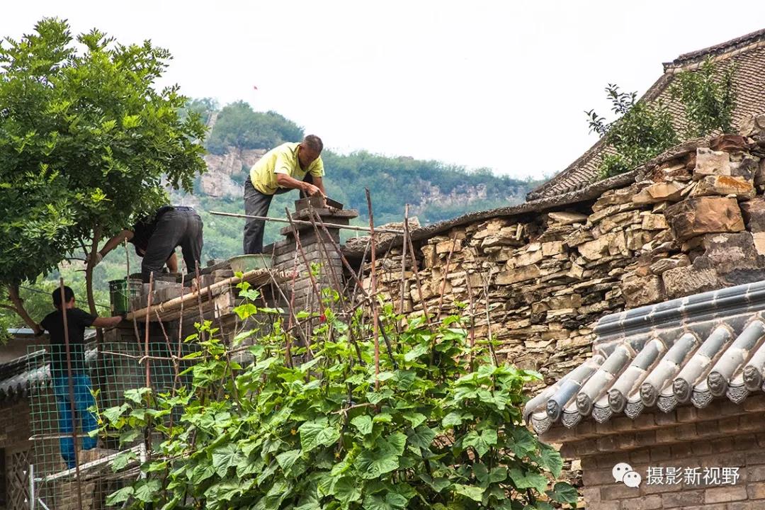 夏日,村里的沿街房立面改造正在進(jìn)行。