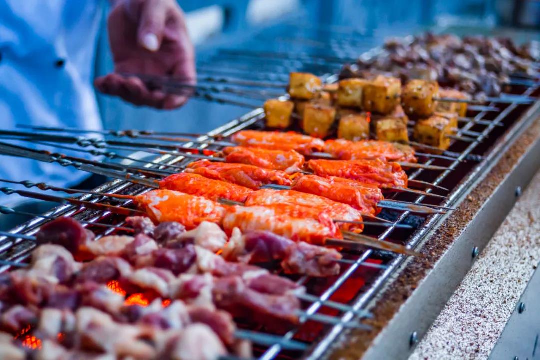 恰到好處的火候,熟練靈巧的翻轉(zhuǎn),油亮飽滿的雞翅在爐子上滋滋作響,還有烤面筋、魚(yú)豆腐、羊肉串、烤玉米等串串分量十足,在大廚們的烹烤下,散發(fā)出令人垂涎欲滴的香味。