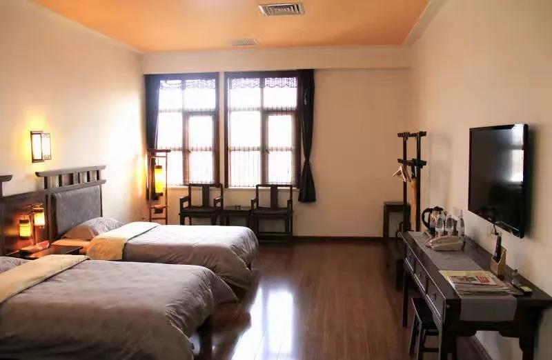17棟唐代風(fēng)格的建筑掩映在青山綠水間,60余間客房居于其中,房間內(nèi)的裝飾古色古香,簡(jiǎn)約質(zhì)樸,推開(kāi)窗滿目青翠,夜晚伴著蛙聲入眠,清晨隨著鳥(niǎo)鳴起床,也是一種美妙的體驗(yàn)!