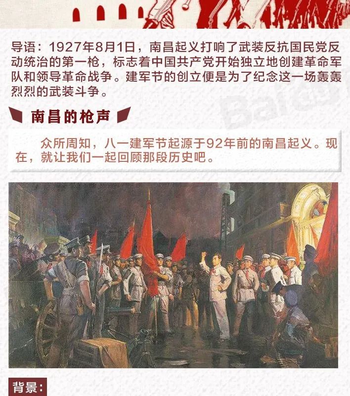 1927年8月1日,南昌起義打響了武裝反抗國民黨反動統(tǒng)治的第一槍,標志著中國共產(chǎn)黨開始獨立地創(chuàng)建革命軍隊和領(lǐng)導革命戰(zhàn)爭。建軍節(jié)的創(chuàng)立便是為了紀念這一場轟轟烈烈的武裝斗爭。重渡溝景區(qū)將在本周六舉行愛我中華-軍歌嘹亮慶八一活動,屆時邀請所有的朋友共唱紅歌,擁軍愛軍,薪火相傳!
