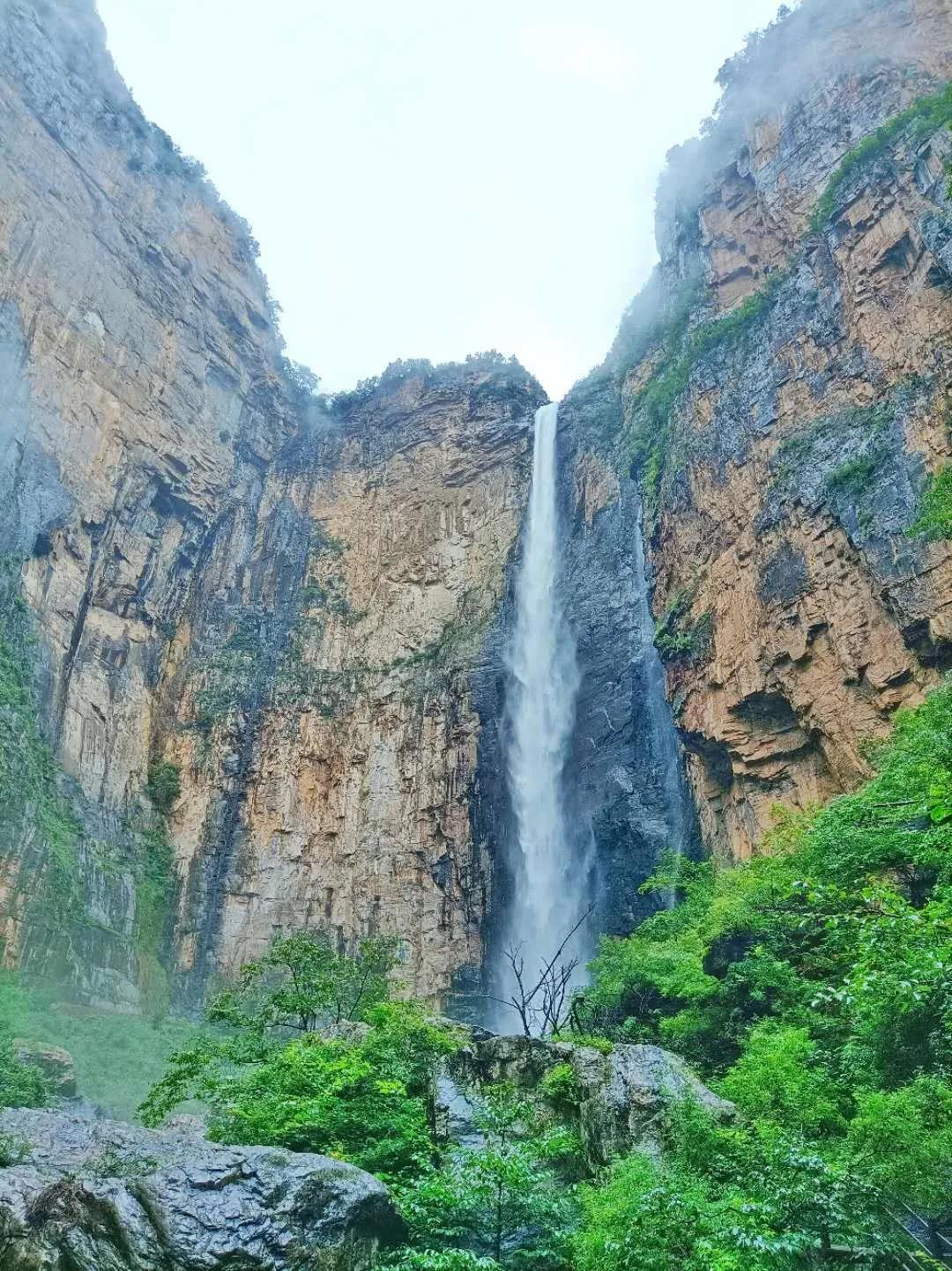 在泉瀑峽的盡頭,云臺(tái)天瀑展現(xiàn)在眼前,浩浩蕩蕩,氣壯山河,在314米高峰間,一匹白色輕紗從天飛落,陽(yáng)光溫柔灑落,瀑布泛起銀色光暈,熠熠生輝。