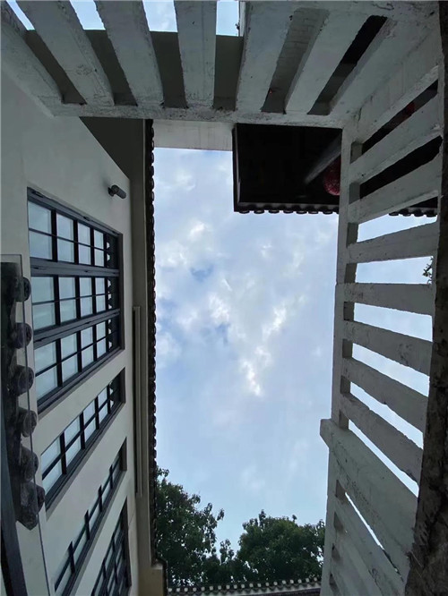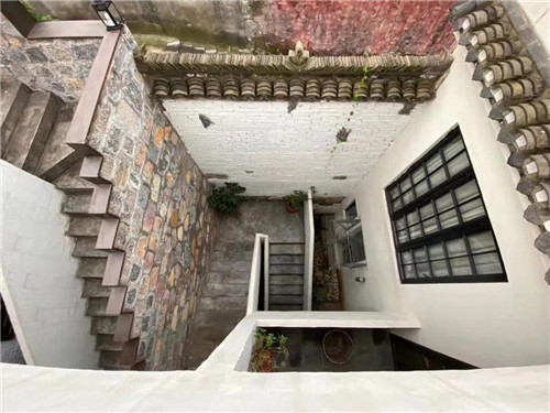 △從樓上俯瞰下沉的院子