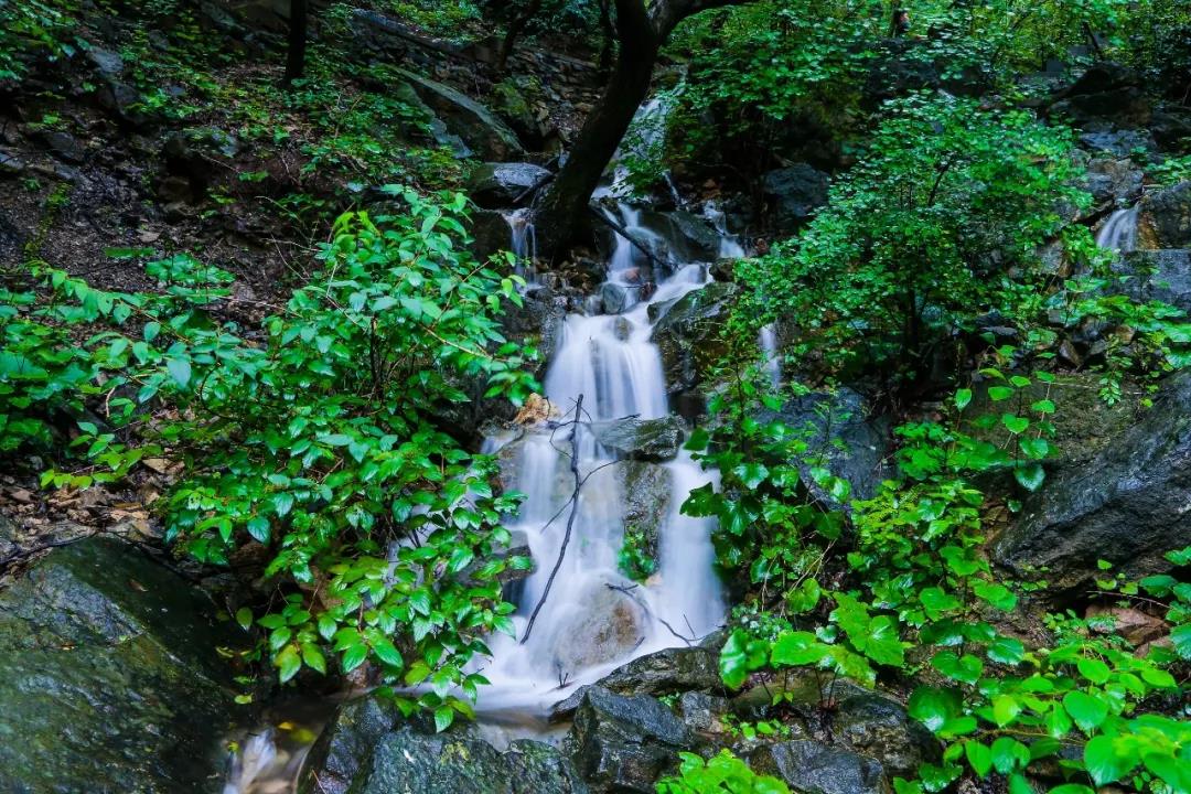 潭瀑峽中三步一泉、五步一瀑宛若江南,聽流水汩汩叮咚作響,觀群瀑爭流好似濺玉,清澈的溪水順著山石而下,若潔白無瑕的素絹,溫柔的流淌在山間。