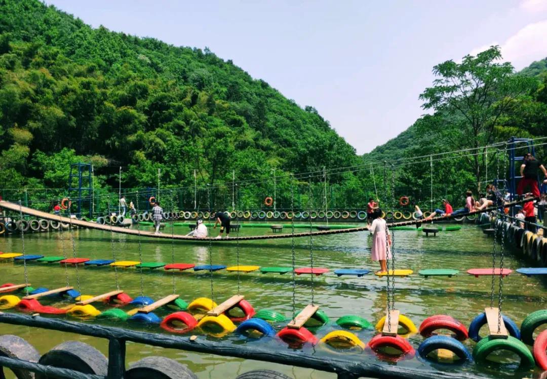 在網(wǎng)紅橋上晃悠悠、蕩悠悠,體驗(yàn)落水瞬間的涼爽。