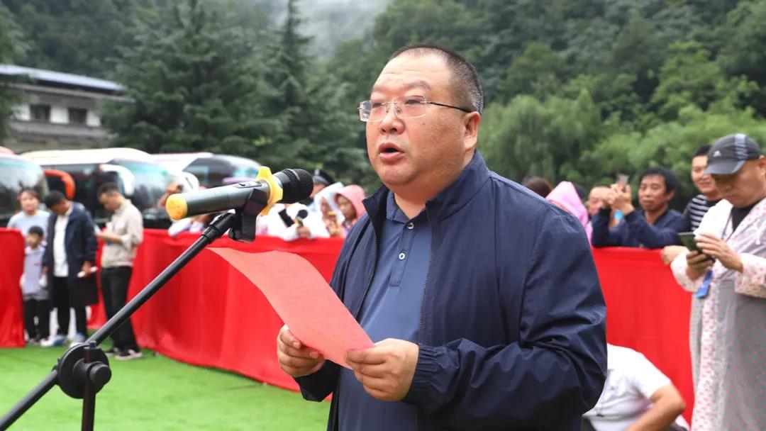 河南老君山國家級自然保護區(qū)管理局局長徐雷致辭,為金婚老人們致祝福詞。