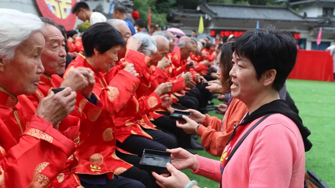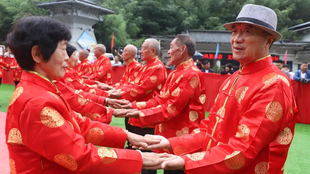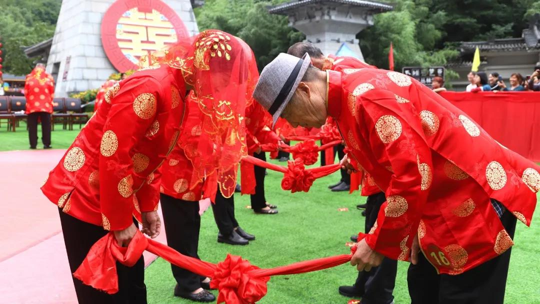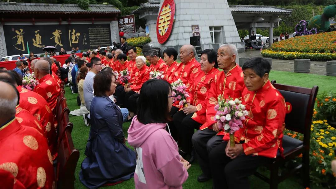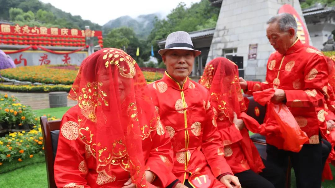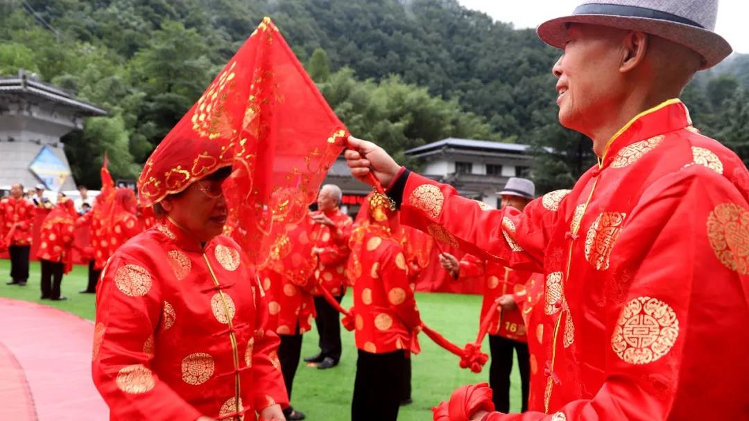 重溫崢嶸歲月,迎接夕陽紅。在老君山攜手入場、行夫妻對拜、挑蓋頭、執(zhí)手禮、后輩獻花多個環(huán)節(jié)下,見證了這28對老人們半個世紀的愛情。